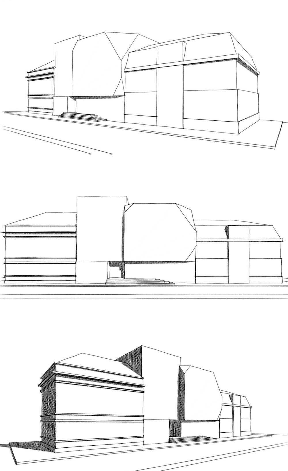 3. Darstellung (12.04.2019) frontal Ansicht (mit Kommentar) Hier wurde die Oberkante geebnet. Das Gelände der Gemeideteildach wurde entfernt und das Gelände der Synagogendach erhöht.wie Kubus 5.1.1 mit vorgesprungene Glasfenster-KubusSynagogenetage mit durchgezogene Glasfenster (gehört eigentlich in die nächste Stufe...)Ganz andere Idee – vertikale Bruch! Eingang wird sehr betont, Synagogenteil zieht sich diagonal zurück."Diamanten-Form" für Synagoge (mit Schnitt in der Parketebene)"Diamanten-Form" für Synagoge (ohne Schnitt der Parketebene)wie Diagonal 12.1 + Vorsprung zur Straßenseitewie Runden 3.1 *Wölbung vor allem über Synagogenteil Zurück Weiter Süd-Ansicht Kubus 5.1.1Kubus 5.1.2Kubus 5.2.1Diagonal 2.1Diagonal 7.3.1Diagonal 7.3.2Diagonal 12.1.1 / Frei 1.1.1Runden 3.1.1 Zurück Weiter Alle drei Ansichten Kubus 5.1.1Kubus 5.1.2Kubus 5.2.1Diagonal 2.1Diagonal 7.3.1Diagonal 7.3.2Diagonal 12.1.1Runden 3.1.1 Zurück Weiter